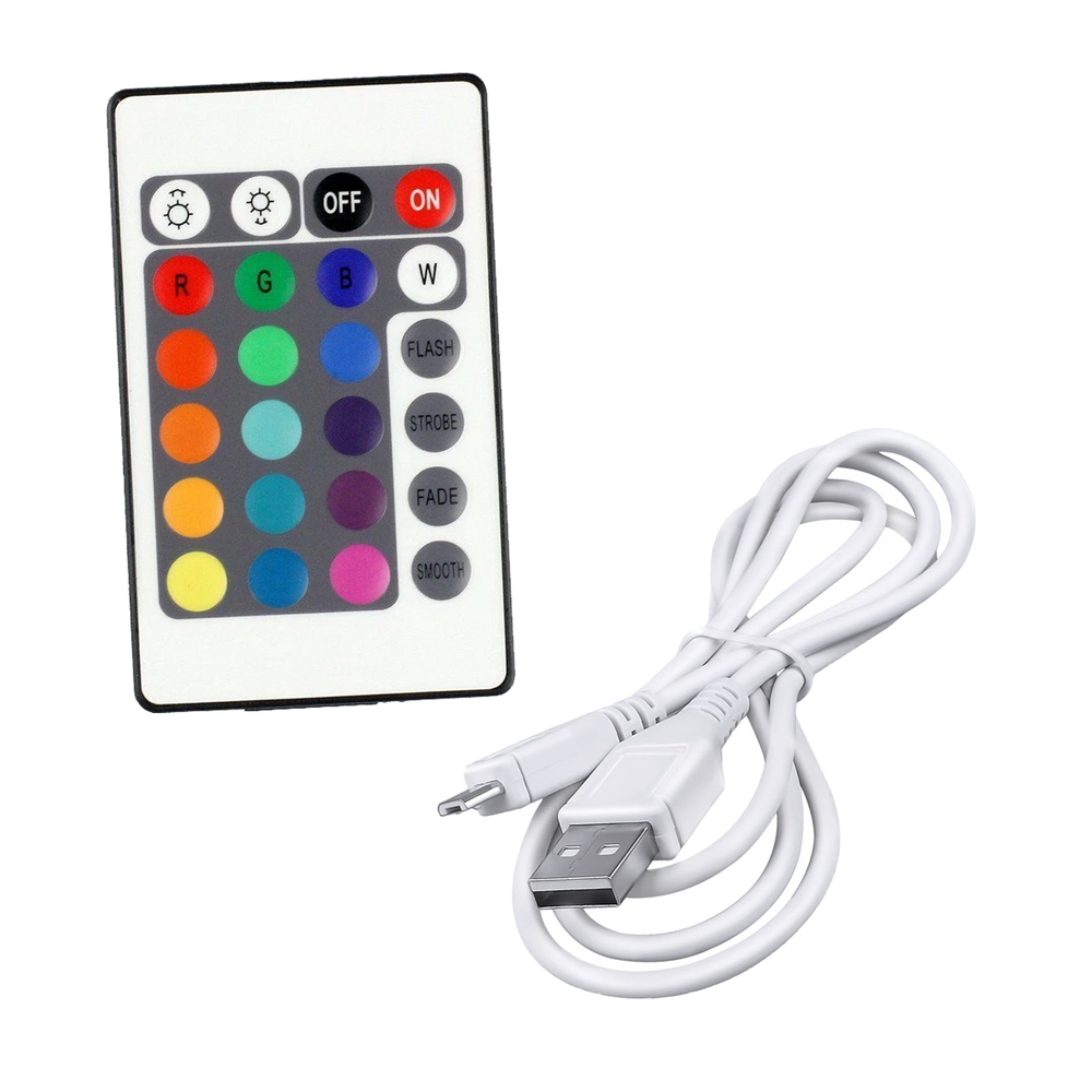 • Includes USB cable and remote to change colors and lighting patterns